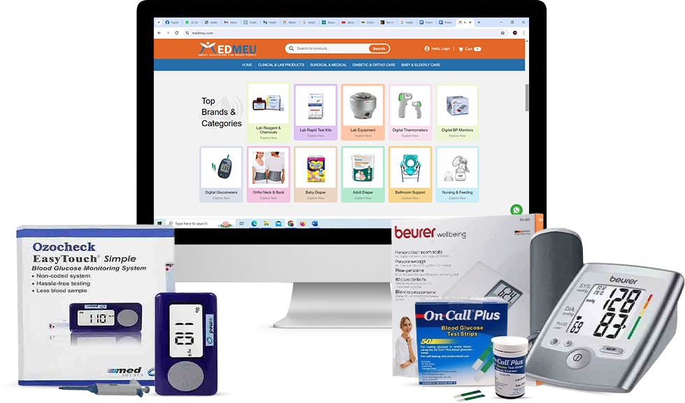 Medmeu is your premier online platform for all your healthcare product requirements. You will find here 100% genuine products in various categories like Clinical & Lab Products, Surgical & Medical, Diabetic & Ortho Care, and Baby & Elderly Care products.